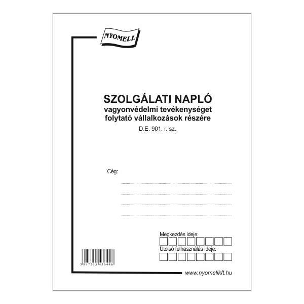 D.E.901 SZOLGÁLATI NAPLÓ, 64 OLDAL, 31 SZÁMOZOTT LAP, A/5