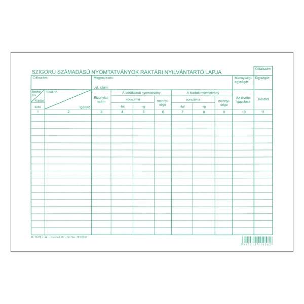 D.13-76 SZIGORÚ SZÁMADÁSÚ NYOMTATVÁNYOK RAKTÁRI NYILVÁNTARTÓ LAPJA