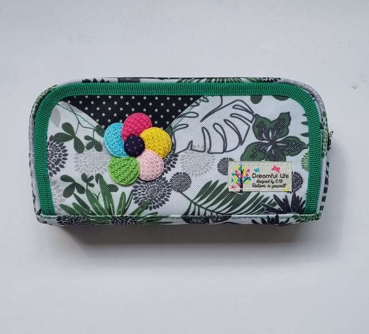 Cipzáras,kétszintes textil tolltartó, feltöltés nélkül. Kiszínezhető.