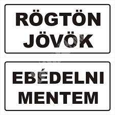 TÁBLA RÖGTÖN JÖVÖK-EBÉDELNI MENTEM, 20X10, FEHÉR