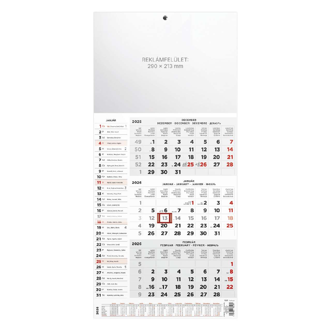 SPEDITŐRNAPTÁR 2026 T077-001, 1 TÖMBBŐL 3 HAVI, 290 MM X 628 MM, ÜRES
