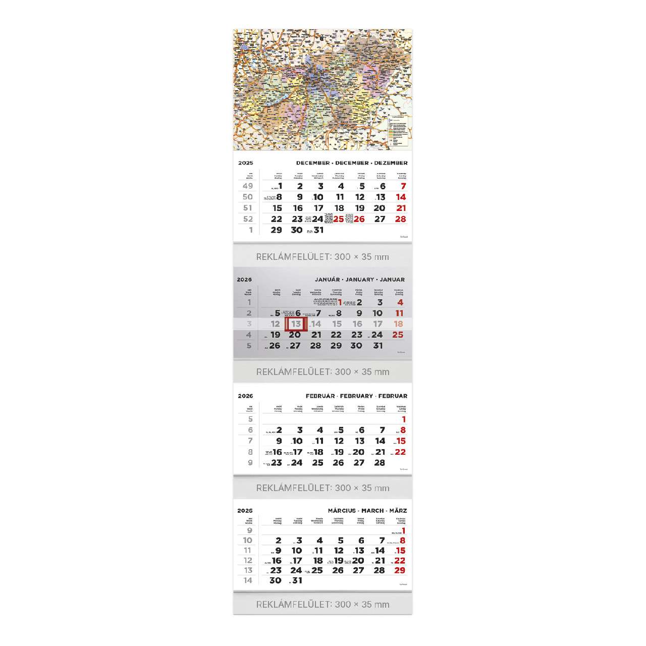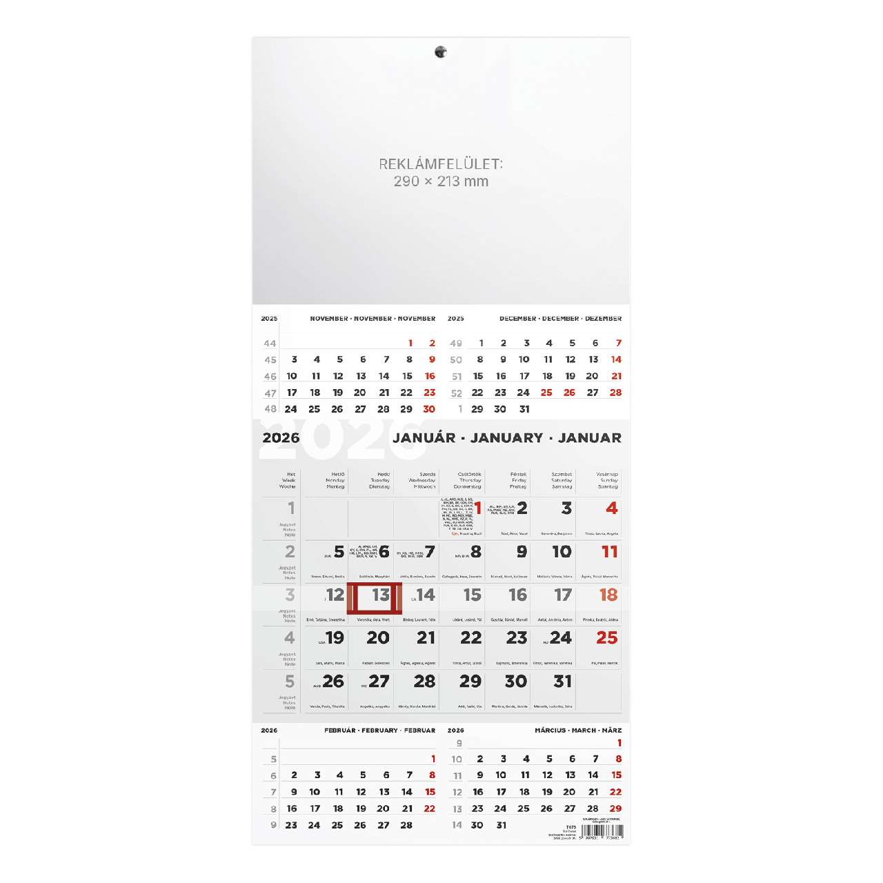 FALINAPTÁR 2026 T093-07A, 310 MM X 420 MM, EZERSZÍNŰ MAGYARORSZÁG