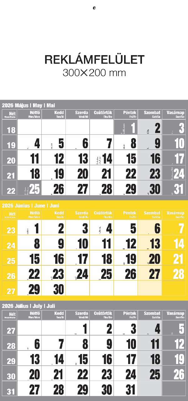 SPEDITŐRNAPTÁR 2026 6061-50, 1 RÉSZES 3 HAVI, 12 LAPOS, SÁRGA