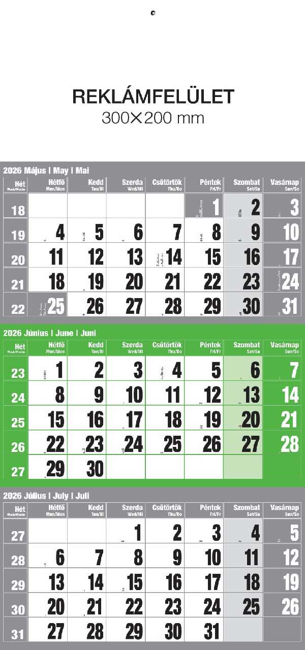 SPEDITŐRNAPTÁR 2026 6061-80, 1 RÉSZES 3 HAVI, 300X680, 12 LAPOS, ÜRES FEJRÉSZ, ZÖLD
