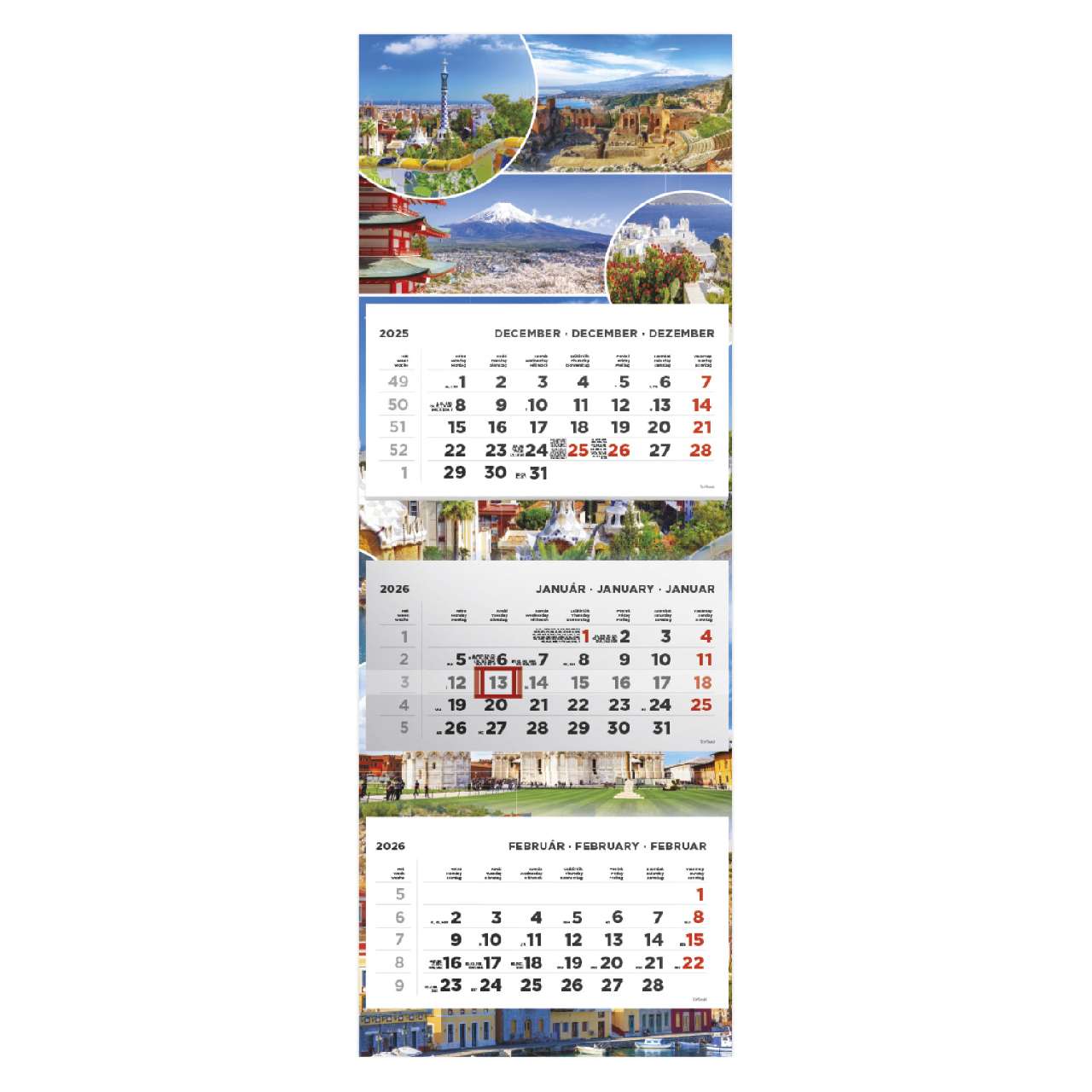 SPEDITŐRNAPTÁR 2026 T080-015, 3 TÖMBBŐL 3 HAVI, 315 MM X 852 MM, TÁJAK