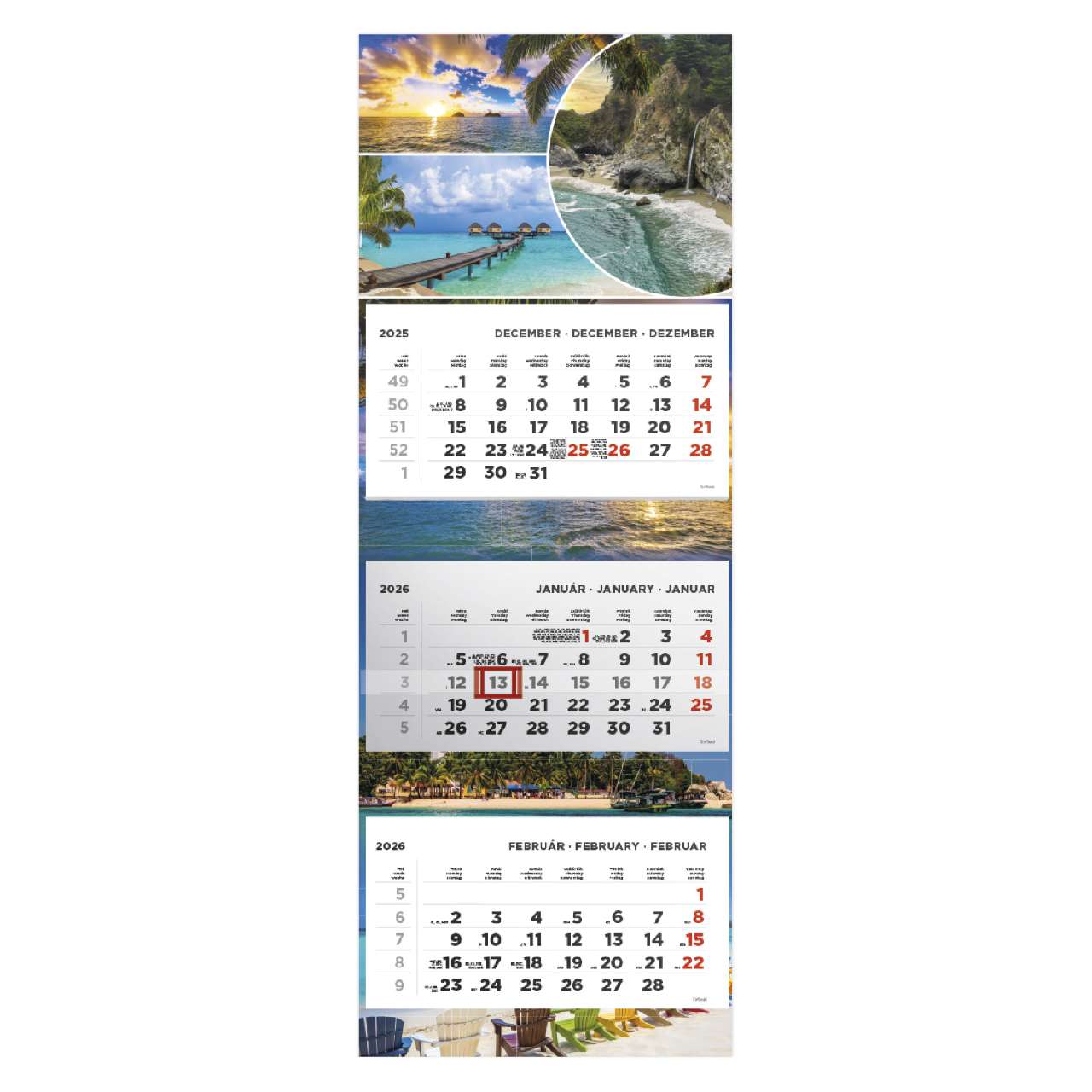 SPEDITŐRNAPTÁR 2026 T080-016, 3 TÖMBBŐL 3 HAVI, 315 MM X 852 MM, BEACH