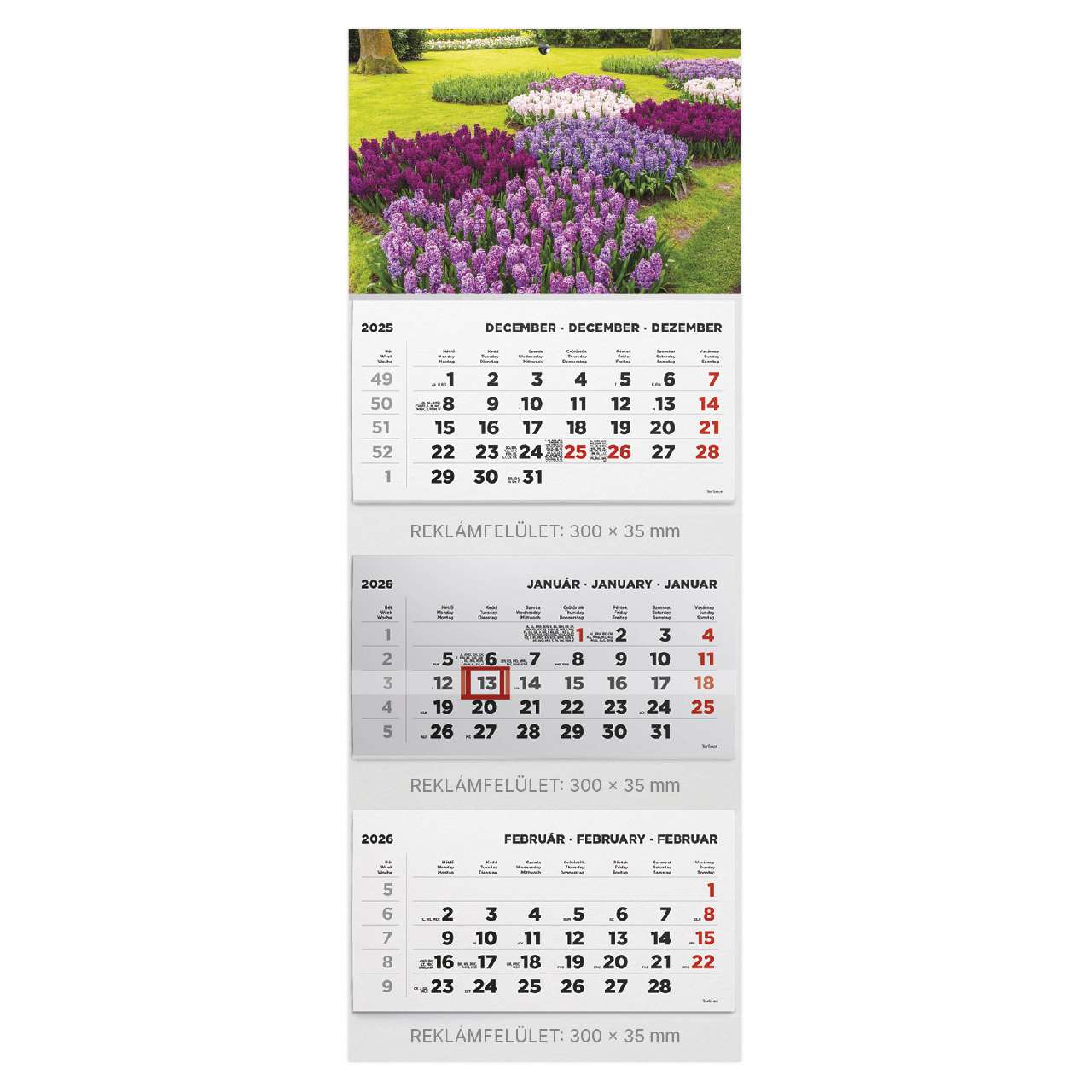 SPEDITŐRNAPTÁR 2026 T070-007, 3 TÖMBBŐL 3 HAVI, 315 MM X 852 MM, KERT