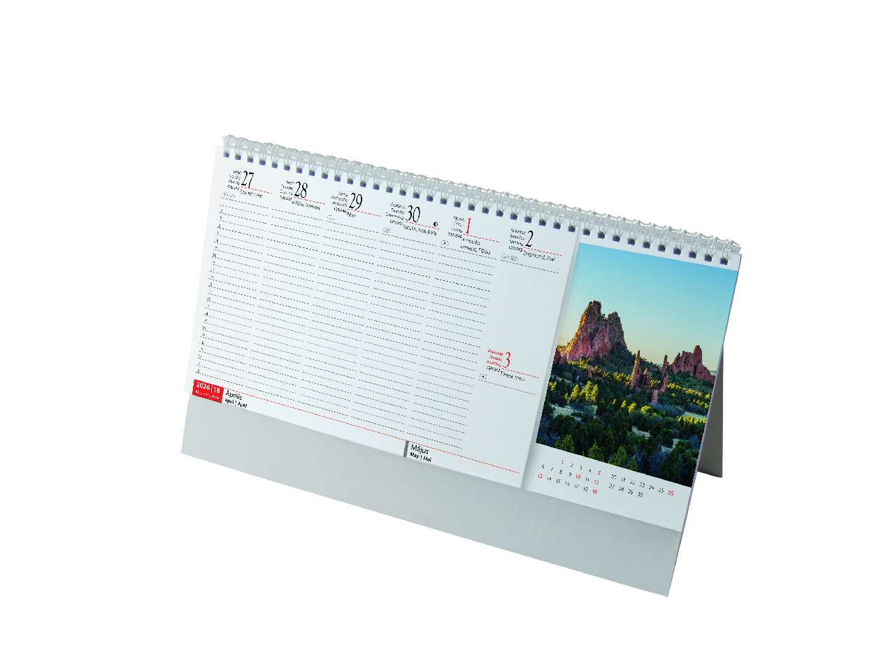 Ikerspirállal összefűzött fekvő naptár heti beosztással