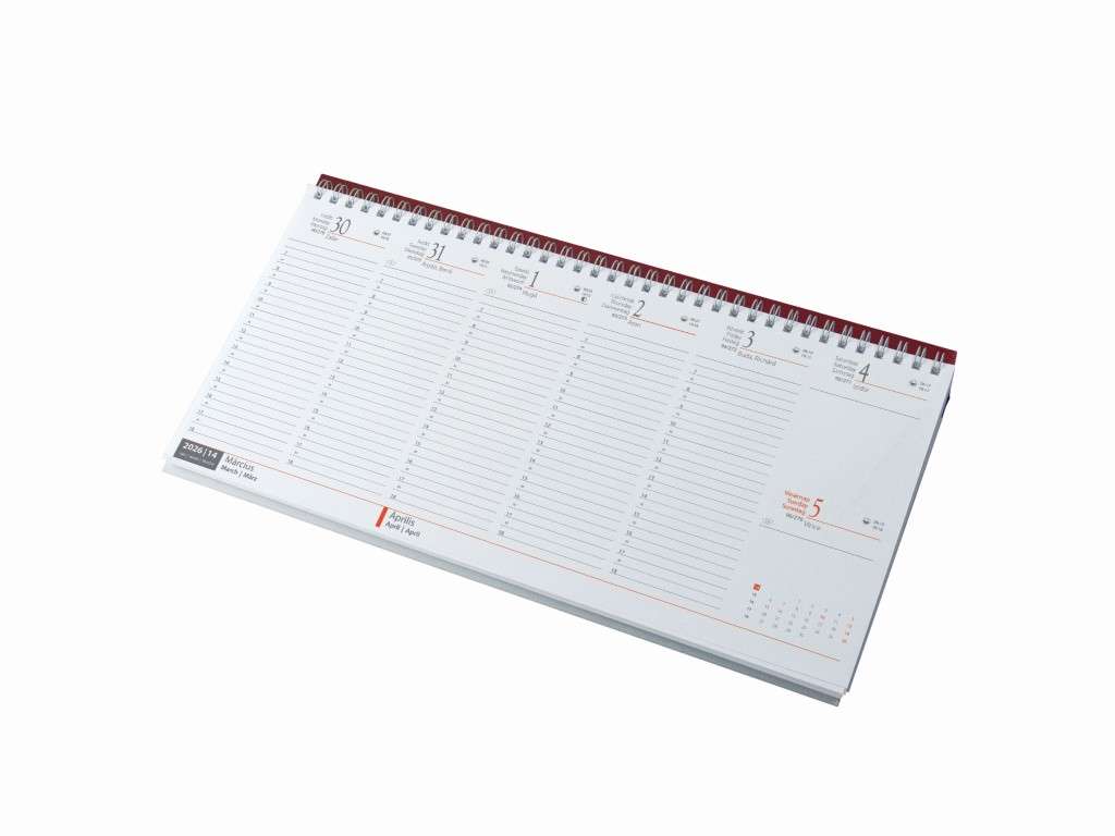 ASZTALI NAPTÁR 2026 7931-09, FEKVŐ, 320X155 FEHÉR , BORDÓ