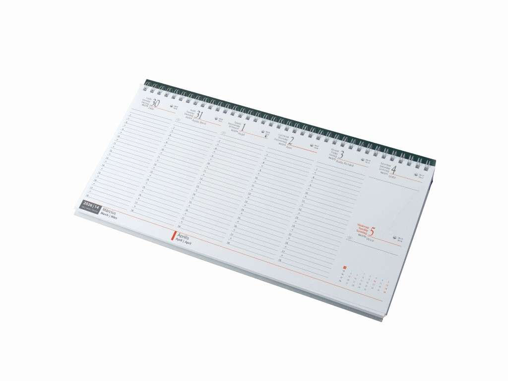 Ikerspirállal összefűzött fekvő naptár heti beosztással