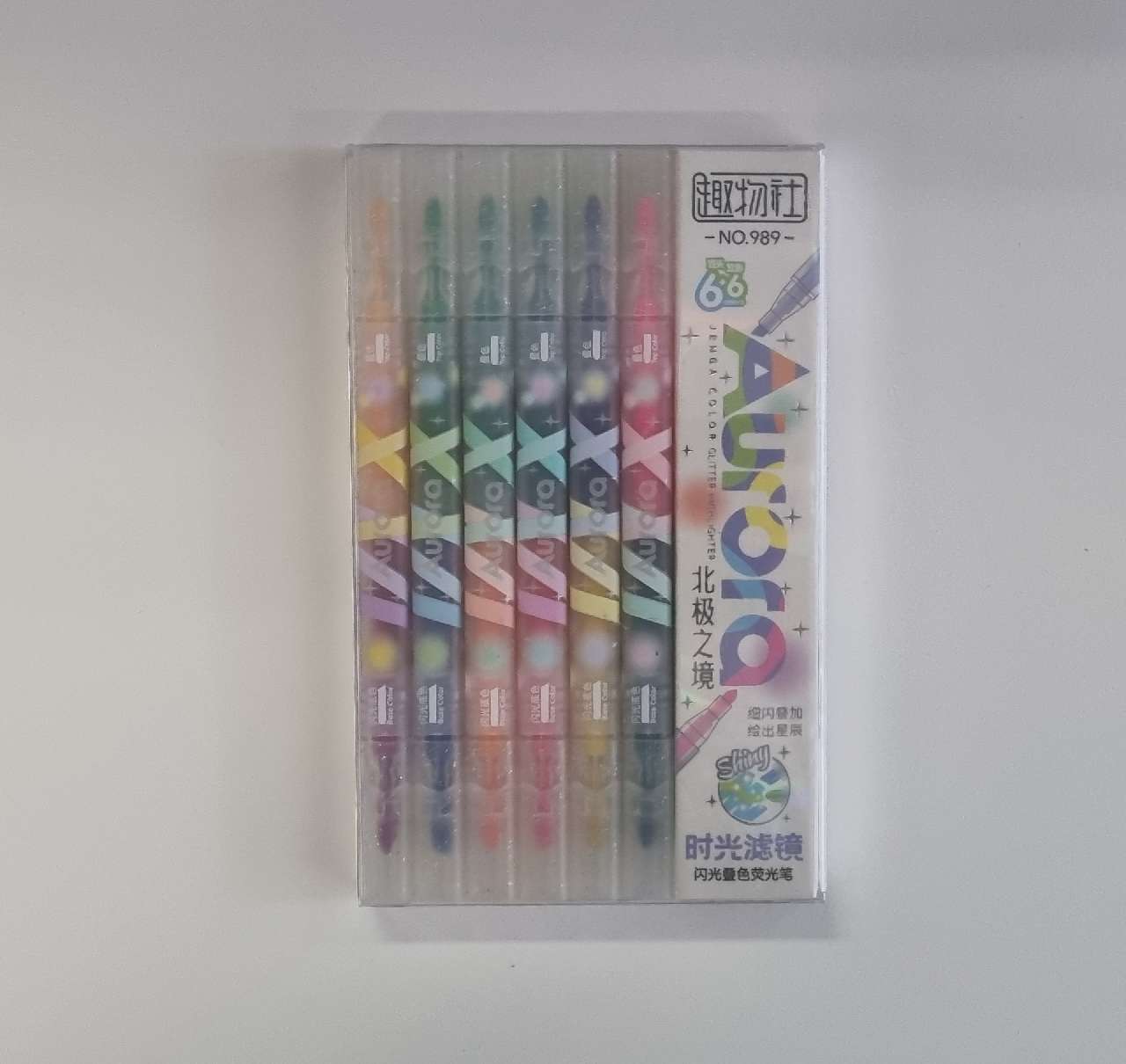 SZÖVEGKIEMELŐ FILCTOLL, AURORA 6+6 SZÍN ,KÁTVÉGŰ, GÖMBÖLYŰ ÉS VÁGOTT HEGY, CSILLÁMOS