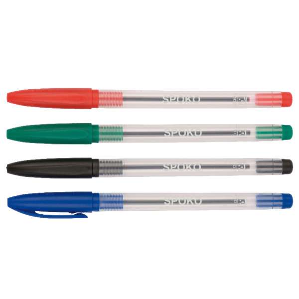 Műanyag testű eldobható golyóstoll, nemcserélhető betéttel, levehető kupakkal.