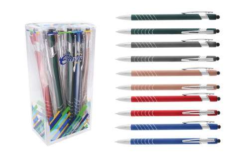 Műanyag testű eldobható golyóstoll, nemcserélhető betéttel, levehető kupakkal.