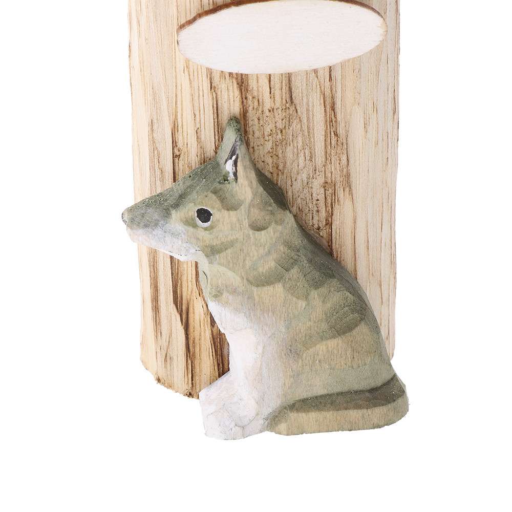ÍRÓSZERTARTÓ MANU, KÉZZEL FARAGOTT FA, EREDETI ÁLLATMOTÍVOMMAL, FARKAS