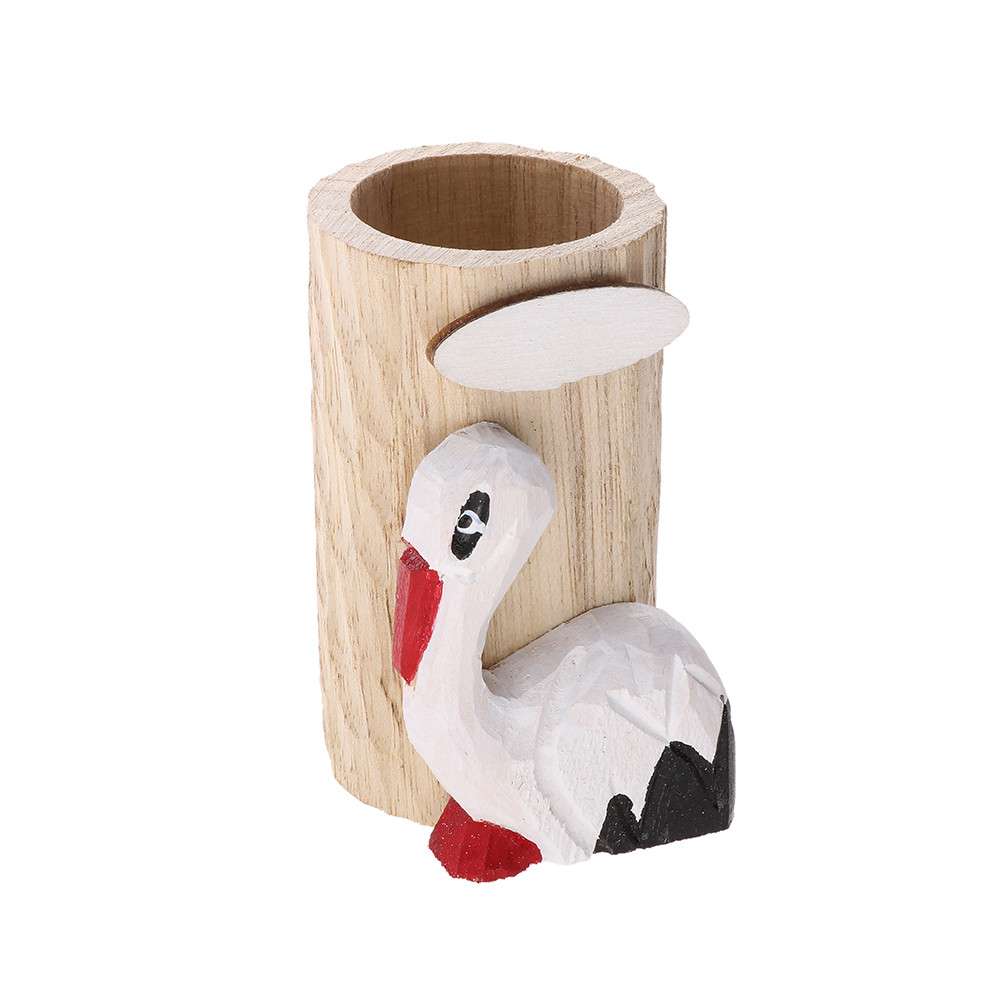 ÍRÓSZERTARTÓ MANU, KÉZZEL FARAGOTT FA, EREDETI ÁLLATMOTÍVOMMAL, GÓLYA