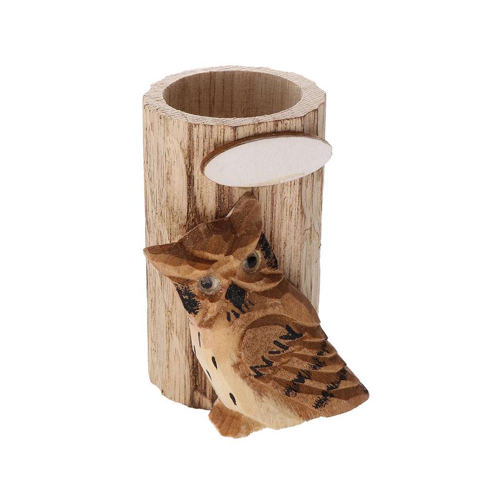 ÍRÓSZERTARTÓ MANU, KÉZZEL FARAGOTT FA, EREDETI ÁLLATMOTÍVOMMAL, BAGOLY