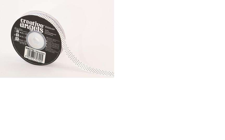 DÍSZKÖTÖZŐ SZATÉN, FEHÉR APRÓ FEKETE PÖTYÖKKEL, 15 MM X22 M