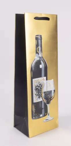 AJÁNDÉKTASAK, ITALOS, 12X36CM, ARANY/FEKETE BOROS ÜVEG