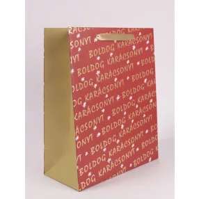 AJÁNDÉKTASAK, KARÁCSONYI, 26X32CM, BOLDOG KARÁCSONYT