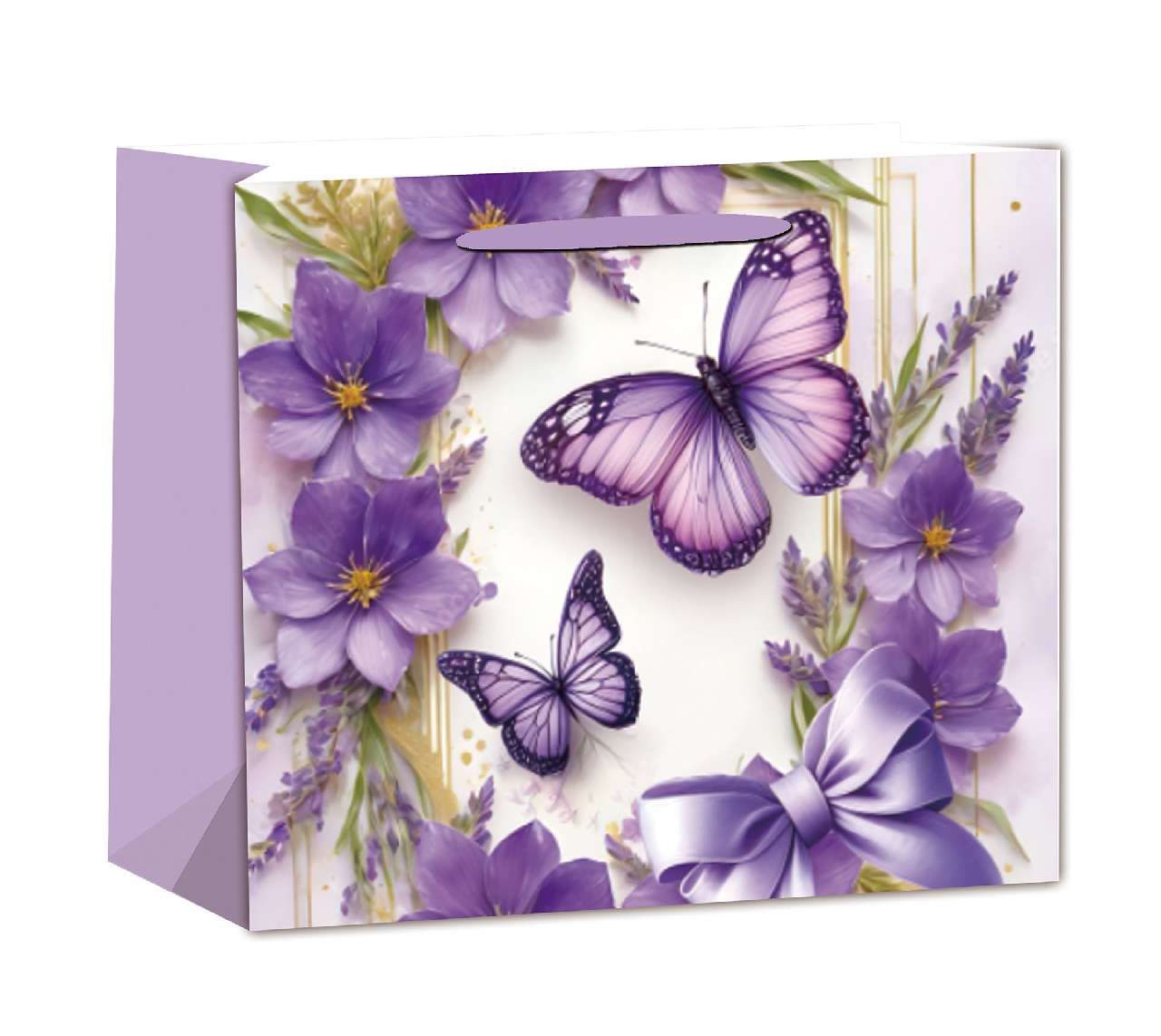 AJÁNDÉKTASAK, 23X18CM, LILA LEPKE/VIRÁG