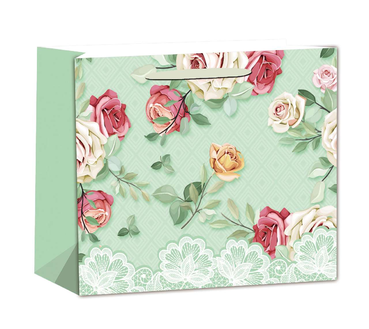 AJÁNDÉKTASAK, 23X18CM, ZÖLD RÓZSÁS