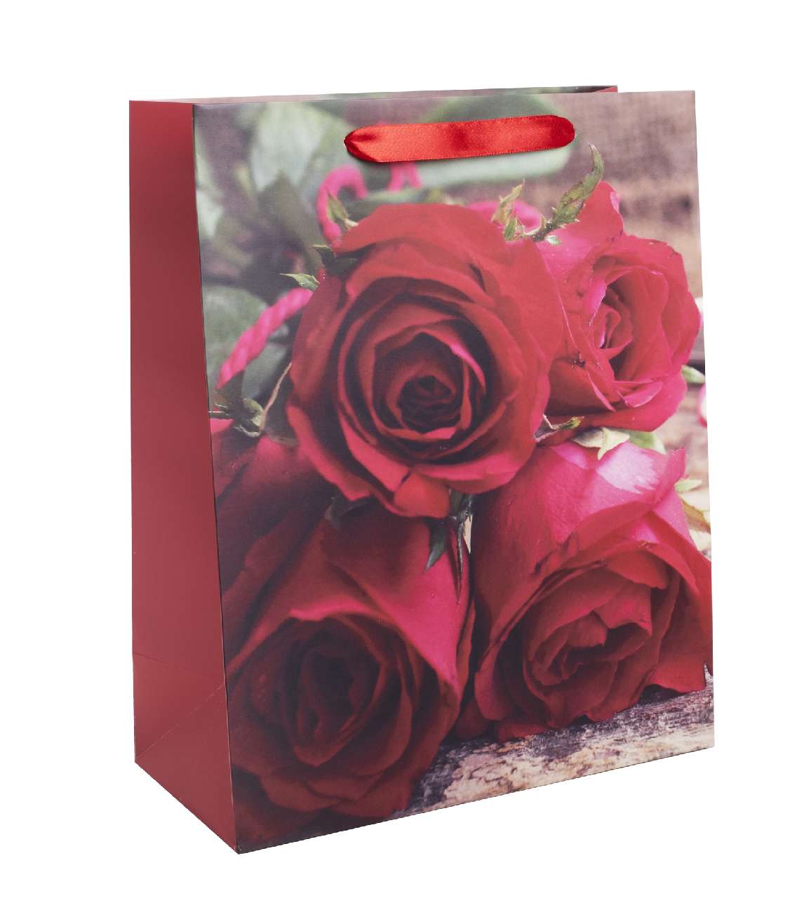 AJÁNDÉKTASAK, VÖRÖS RÓZSÁK, 26X32CM