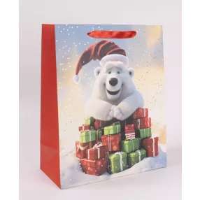 AJÁNDÉKTASAK, KARÁCSONYI, 26X32 CM, JEGESMACI+AJÁNDÉK