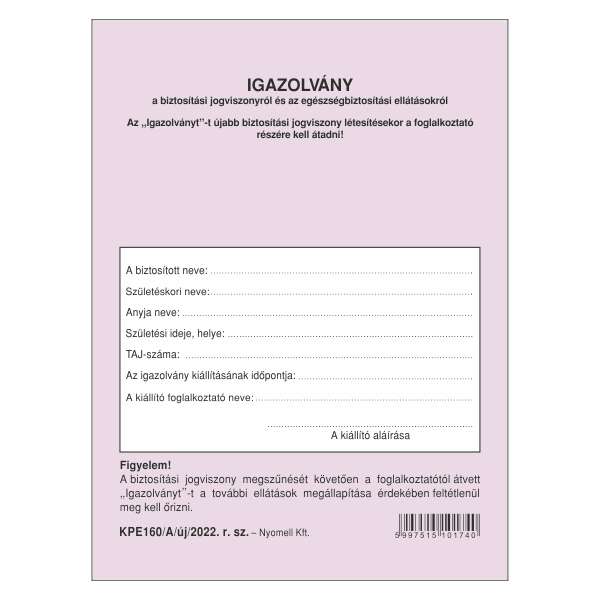 A.3510-274 ORVOSI LÁTLELET ÉS VÉLEMÉNY, 1+1 SZÍN