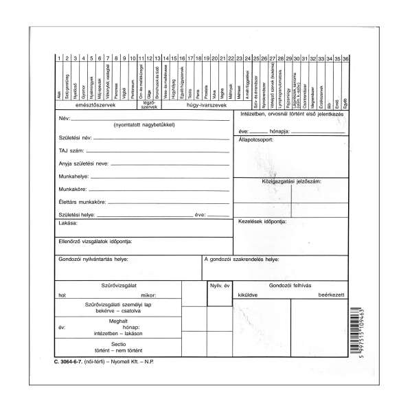 C.3064-23 ONKOLÓGIAI SZŰRŐLAP A/5, FEKVŐ, 2 O., A/5, FEKVŐ, 2 O.