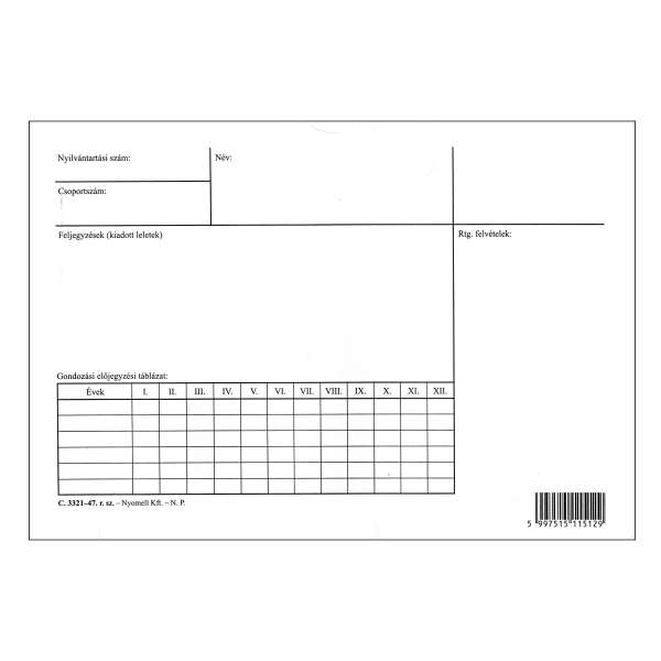 C.3341-38 TERHES TÖRZSLAP, FEKVŐ 8 OLDAL + BORÍTÓ, A/5, 70 g/m2 ofszet 1+1 SZÍN