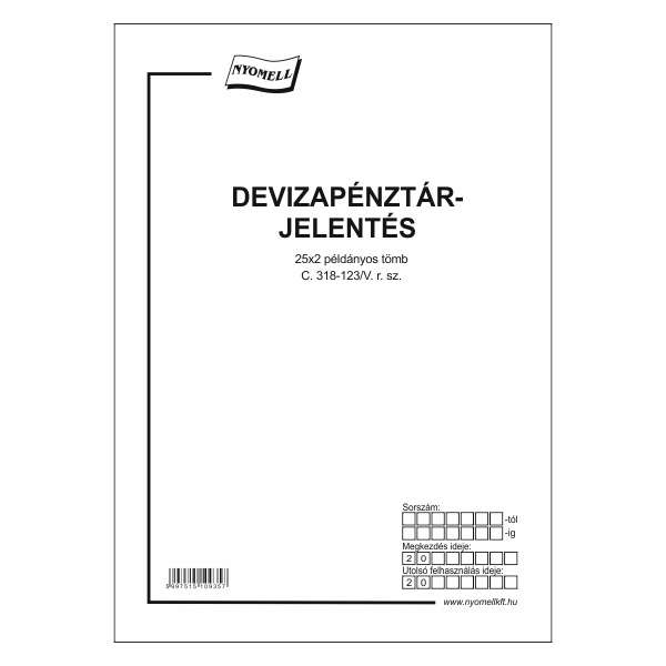 C.318-123/V DEVIZA PÉNZTÁRJELENTÉS, 25x2 PÉLDÁNYOS, A/4
