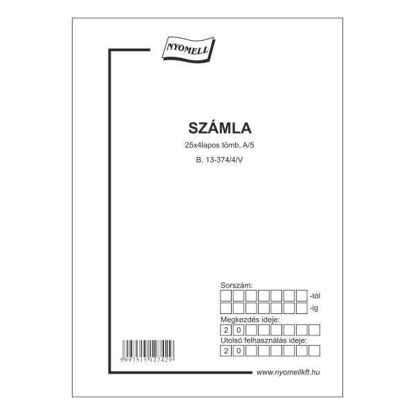 B.13-374/4/V SZÁMLA, 25X4 LAPOS , A/4