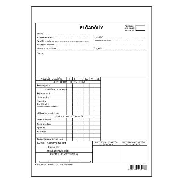 C.5230-182 ELŐADÓI IV, A/3 A/4-RE HAJTVA, 1+0 SZÍN
