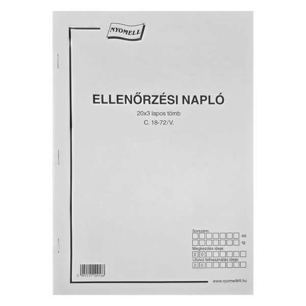 C.18-72/V ELLENŐRZÉSI NAPLÓ, 20X3 PÉLDÁNYOS, A/4