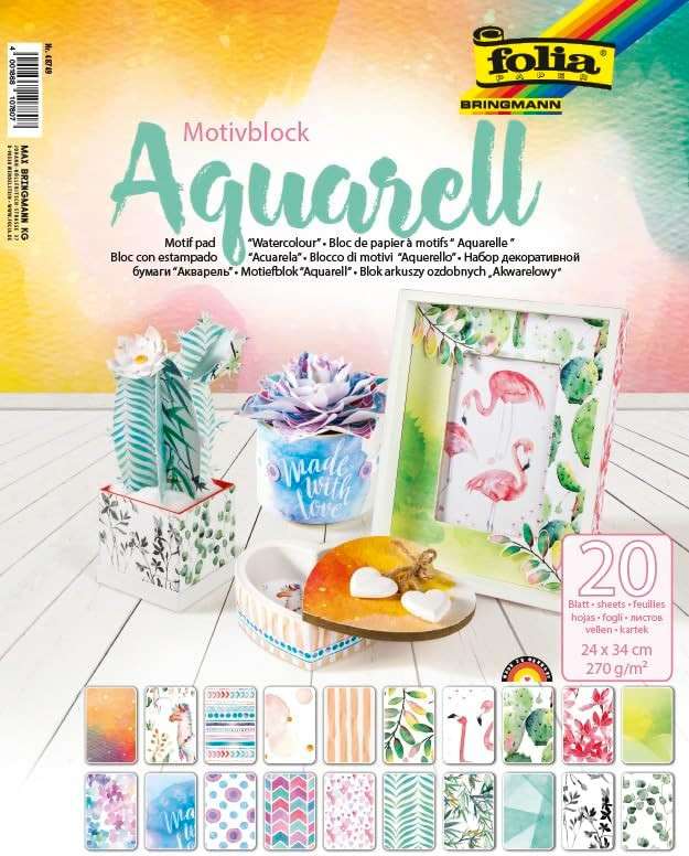 DEKORÁCIÓS PAPÍR KÉSZLET FOLIA, AKVARELL 24X34 CM 270G, 20 ÍV/CSOM ( CSOMAG NEM BONTHATÓ), VÁLOGATOTT SZÍN