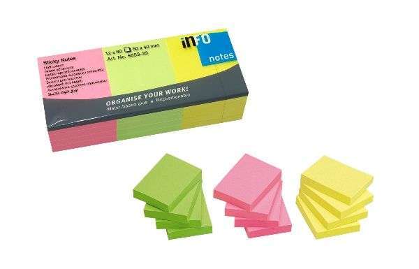 JEGYZETTÖMB ÖNTAPADÓS, 40X50 MM, 12X80 LAP, NEON MIX