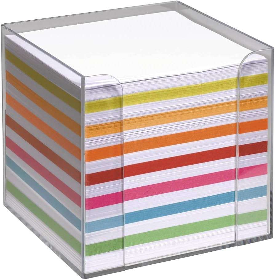 JEGYZETTÖMB, ÁTLÁTSZÓ MŰANYAGBAN, 700 LAP, 9,5X9,5 X9,5 CM, SZÍNES/ SZÍNES