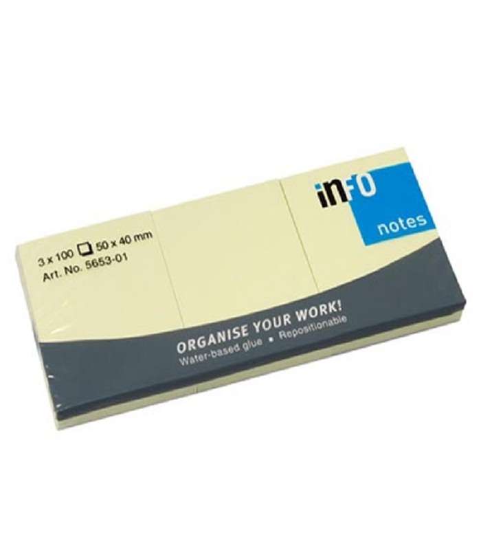 JEGYZETTÖMB ÖNTAPADÓS, INFO, 40 MM X 50 MM, 100 LAPOS, 3DB/CSOMAG, SÁRGA