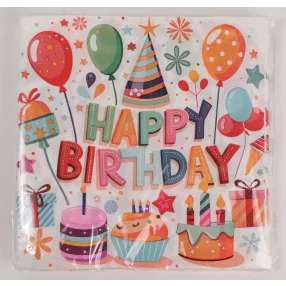PARTI SZALVÉTA, 3 RÉTEGŰ, 33X33 CM, 20DB/CSOMAG, HAPPY BRITHDAY