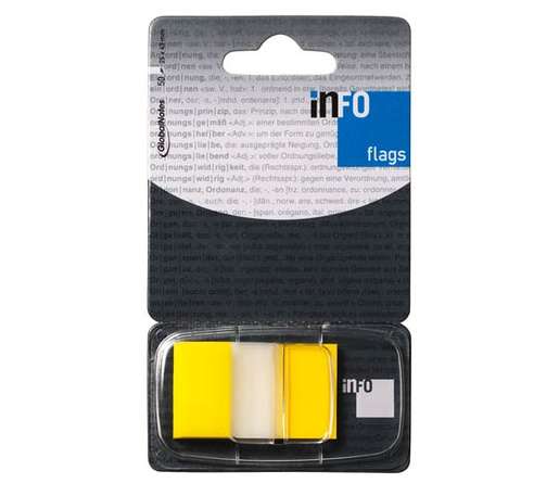 JELÖLŐCÍMKE GLN INFO FLAGS 25X43 MM 50 LAP TRANSPARENS/SÁRGA